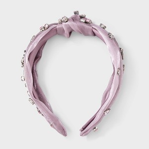 Add a lovely finishing touch to your everyday looks with the Top-Knot Gemstone Headband from A New Day™. This headband features a wide band with a top knot covered in shiny satin fabric adorned with shiny gemstones for a glam look. Suitable for all hair types, the headband offer a secure and comfortable fit around your head.