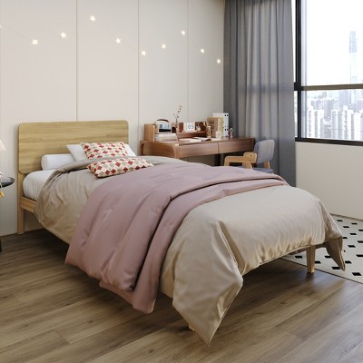 TopComfy Beds Queen Size Iron Platform Bed Frame with Wooden Slats Upholstered Headboard for Bedroom Furniture, White, 83.66"*62.2"*41.34"