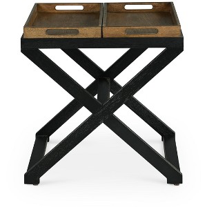 Reversible and removeable trays with handlesCocktail, End and Chairside End Tables are availableBrown walnut and ebony colored finishTransitional design