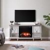 Sold as a set of multiple boxes. Live the life of luxury with this mirrored electric fireplace. Silver finish pairs with a mirrored frame, reflecting surrounding spaces. Acrylic hardware accents scored cabinet doors, enhancing the glitz and glamour of your living space. Glowing faux fire logs add ambiance with flickering LED flames and lifelike embers, with or without heat. Add the sparkle and shine you've been dreaming of when you upgrade your living area or media room with this storage media console fireplace.