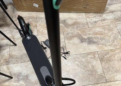 This is really cool. It’s a high-end electric scooter. The battery is in the bottom board, instead of the vertical stick, making it more stable. It has a handbrake in case of emergency. It has Eco mode to save power. It won’t boot until you give it some speed so it won’t surprise you. Good!