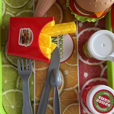 My daughter bought this pretend fast food toy set and had a blast playing with it during a recent playdate. She and her friend set up their own little restaurant, complete with burgers, fries, and ice cream! The pieces are colorful and easy to handle, perfect for imaginative role-play. Watching them serve meals and take “orders” was just too cute. Highly recommended for creative playtime