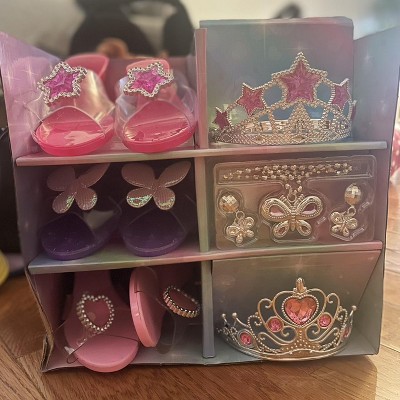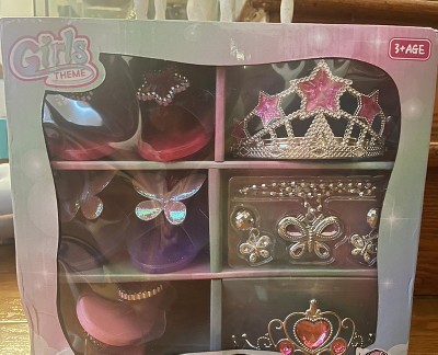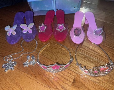 My daughter absolutely loves this set! The shoes fit perfectly and the jewelry and tiaras are adorable. Everything feels safe and well made for kids. It makes dress-up time so much more fun. Great value for the price!