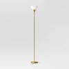 Brighten any room with the Torchiere Floor Lamp from Room Essentials™. This sleek, minimalist lamp features an upward-facing white bowl shade that delivers soft ambient light. Its slim metal stand and weighted base add modern stability and style. A simple turn-knob 3-way switch lets you choose low, medium, or high brightness to match your mood.