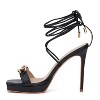 It's Friday night, girl! Step into the party with confidence in the Cassava stiletto sandals. These sandals feature wrap-around straps for a dramatic effect and elegant gold detailing at the front, elevating your look with sophistication and style. Perfect for a night out, the Cassava sandals ensure you feel like a diva, making a bold statement wherever you go. Embrace the spotlight and exude confidence with every step in the Cassava stiletto sandals.
