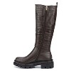 Elevate your edgy style with these tall moto boots, designed to make a bold statement. Featuring a striking faux crocodile texture and gore side panels, they offer a convenient pull on design. The standout thick lug sole adds a rugged touch, while the supple faux leather construction ensures durability. With a durable rubber sole and a soft fabric lining, these boots provide next to skin comfort, making them perfect for all day wear. Add attitude and flair to your outfit with these must have boots.