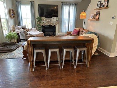 Absolutely love this! We put it in our Living Room and added stools under it and the extra seating / eating area is