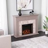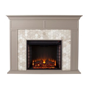 Sold as a set of multiple boxes. Modernize your media room with this gray and white marble fireplace. Hexagon shaped tile and authentic marble join together to craft a look that's both homey and elegant. Glowing faux fire logs add ambiance with flickering LED flames andlifelike embers, with or without heat. Add grace and charm to your family living area when you add this real marble fireplace to the heart of your home.