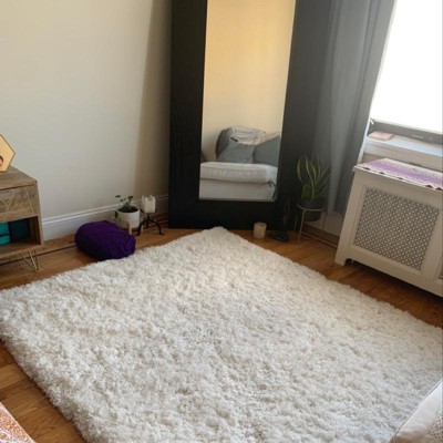 Very nice rug so far. It’s fluffy and feels comfy on my feet. The color is a bit whiter than I realized but it still looks great. I was able to vacuum it no problem which I was a bit worried about because the pile is so high.