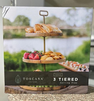 - THREE TIERED SERVING TRAYS - The Tapas 3 Tier Serving Tray is a stylish and space-saving way to serve appetizers, desserts, cheeses, and charcuterie