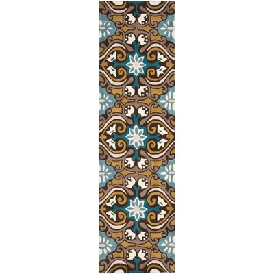 Introduce a splash of charm to your hallway with this stunning runner area rug. Measuring 2 feet 3 inches by 9 feet, its elegant length and contemporary design bring a touch of sophistication to any space. The vibrant blue and multi-colored floral pattern adds a refreshing burst of nature-inspired style. Crafted using a hand-hooked weave technique, this rug boasts a poly-acrylic pile for a soft underfoot feel. Its 1/4 inch height ensures a seamless fit under most doors, making it perfect for high-traffic areas. Made in China, this rug embodies a modern aesthetic that blends beautifully with various home decor styles. Transform your living spaces with this exquisite floral runner and enjoy the visual appeal and inviting atmosphere it creates.