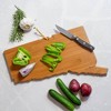 Show off your favorite state with the Totally Bamboo Connecticut State Shaped Cutting Board with Artwork by Summer Stokes! This Connecticut shaped serving board features vibrant UV printed artwork inspired by Connecticut's beautiful landscape. As a charcuterie board, it's a great way to add "local flavor" to your next gathering. Before serving, flip the board over for use as a knife-friendly bamboo chopping board on the blank back side. When not in use, the included hang tie allows the board to easily double as wall art. Caring for the board is easy; simply hand wash with warm water and soap. It also makes a great gift for anyone that's a fan of the state!