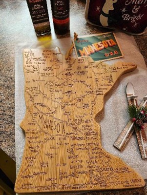 This cutting board is a charming and functional gift that captures the essence of Minnesota with its detailed design. Guests appreciate its beauty and practicality, making it perfect for serving or display. While some noted size limitations, the overall sentiment is positive, highlighting its appeal as a thoughtful present for various occasions. Many guests are eager to purchase additional boards for themselves or as gifts, showcasing its popularity.