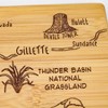 Celebrate life in The Equality State with the Totally Bamboo Destination Wyoming State Shaped Serving and Cutting Board! This beautifully crafted bamboo cutting board is shaped to the outline of the great state of Wyoming, and features laser-engraved artwork of all the top cities, places and attractions. It's a great way to add a bit of local flavor to your charcuterie or appetizer spread. The reverse side of the board is blank and provides an ideal, knife-friendly cutting surface. When not in use, the included hang tie allows the board to double wonderfully as wall art to show off your love of Wyoming in the kitchen, dining room or den. The Destination Wyoming Board also makes an outstanding gift for birthdays, housewarmings, Christmas or any occasion! Hand wash only; measures 14-1/4" x 11" x 5/8".