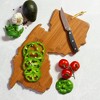 Show off your favorite state with the Totally Bamboo New Jersey State Shaped Cutting Board with Artwork by Summer Stokes! This New Jersey shaped serving board features vibrant UV printed artwork inspired by New Jersey's beautiful landscape. As a charcuterie board, it's a great way to add "local flavor" to your next gathering. Before serving, flip the board over for use as a knife-friendly bamboo chopping board on the blank back side. When not in use, the included hang tie allows the board to easily double as wall art. Caring for the board is easy; simply hand wash with warm water and soap. It also makes a great gift for anyone that's a fan of the state!