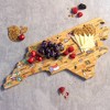 Celebrate life in The Tar Heel State with the Totally Bamboo North Carolina State Shaped Cutting Board with Artwork by Fish Kiss! This board features beautifully illustrated artwork by Fish Kiss of all the top towns and attractions in the state. A fun and unique choice as a charcuterie board, you and your guests will love reminiscing about all of your favorite places featured on the board. Before serving, flip the board over for use as a knife-friendly bamboo chopping board on the blank back side. When not in use, the included hang tie allows the board to easily double as wall art. The artwork is applied using a specialized UV printing technique that's safe for food contact and will maintain its beautiful color. Caring for the board is easy; simply hand wash with warm water and soap. It also makes a great gift for anyone that's a fan of the state!