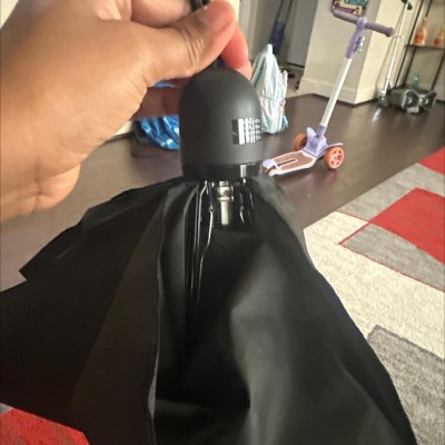 I got this umbrella for my son, and he loves that it’s plain black and compact. It looks well-made and sturdy.