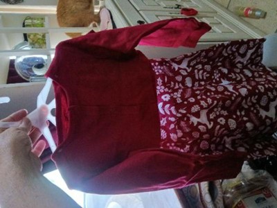 Product Name: Touched by Nature Infant and Toddler Girl Organic Cotton Dress and Cardigan, Red Winter Folk, 6-9 Months
