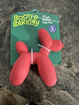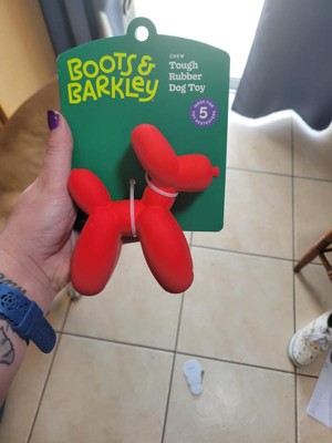 Your furry friend will have tons of fun playing with the Tough Rubber Balloon Plush Dog Toy from Boots & Barkley™. Shaped like a classic red balloon puppy, this dog toy is made from tough rubber to give them hours of fun. Showcasing a soft plush construction, this tough rubber dog toy is designed for fetching, chewing, and hours of tail-wagging playtime.