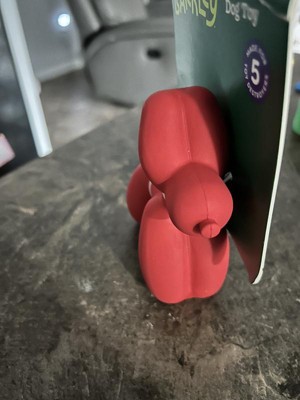 @Target and #heybullseye I received this dog toy for to give my honest review. This rubber chew toy looks like a red balloon dog it is solid hard rubber. It will stand up to rough dog play. It would be very hard for a dog to chew it up.