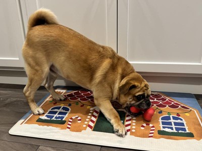 My Puggle, Niko, has the grip of a great white and toys just don’t seem to last very long in our home. This one has stood the test of time (for at least a couple weeks so far, anyway!). My pup loves it, it’s adorable, it’s satisfies his urge to chew, and is durable. Both Niko and I recommend this for your furry four-legged (or less, we don’t judge!) friend!