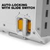 • • AUTO LOCKING: The mechanism engages when the box is dropped into place. Cooler's locking points accommodate most lock sizes and types (lock not included)