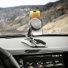 A: The mount uses high-powered magnets to firmly hold your devices in place while driving.