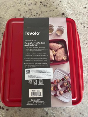 [This review was collected as part of a promotion.] We love to marinate and BBQ, and the Tovolo Marinade Tray with Lid has been a total game changer! The color-coded trays make it easy to keep raw and cooked foods separate, which gives us peace of mind when it comes to food safety. The deep bottom tray holds plenty of marinade, and the top tray doubles as a lid and serving surface—super convenient! It's sturdy, easy to clean, and saves us from using single-use bags. A must-have for any grill enthusiast!