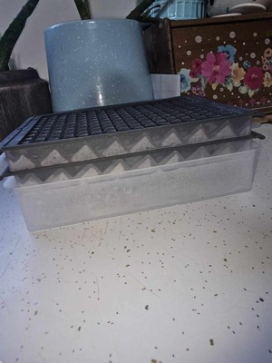 This innovative mini ice tray is easier to release than standard mini ice trays, is more affordable than ice machines and creates mini ice for 2+ drinks (150 mini ice cubes) with a simple twist of the tray! Mini ice is quick to freeze and chills drink fast. Try mini ice in cocktails, smoothies, iced coffees, soft drinks and more. Included in the set is two trays with lid, scoop and storage bin. The tight-fitting lid and storage bin seals ice from freezer odors, keeping ice fresh and clean. Made of BPA-free plastic and silicone and is dishwasher safe.