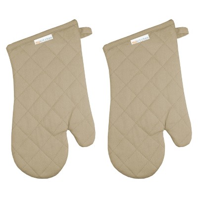 TOWN & COUNTRY BASICS Basketweave Soft Silicone Mini Oven Mitt 2-Pack Set, Heat Resistant up to 500F, Flexible Silicone, Non-Slip Grip, Beige, 5.5"x8"