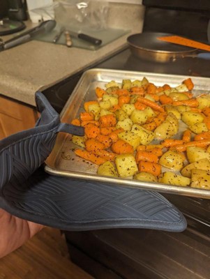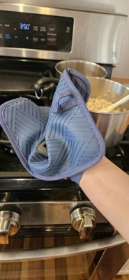 [This review was collected as part of a promotion.] These are great. They are so nice and big. My previous pot holders are so small in comparison. Love how you can put your whole hand in them and feel protected. They have the silicone side to protect against the heat. I only wish that it had a bend in them for when you are grabbing a hot item. It takes some maneuvering to get it to bend. Great item I highly recommend. Love the coverage. I have enough burn marks.