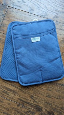 This matching kitchen set features convenient hanging loops to easily display or store them when not in use. These potholders are easy clean, simply wipe clean or rinse underwater for a fresh start. Pair your Basketweave Soft Silicone Pot Holders with coordinating kitchen accessories from the Town & Country Basics collection.