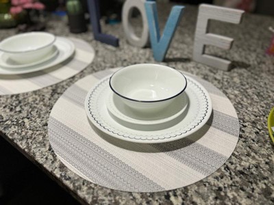 [This review was collected as part of a promotion.] We got these lovely town and country basics Cabana Striped indoor and outdoor placemats in grey and white. We just love how simple but very elegant. They are very sturdy and nicely woven together. We love having them to keep the counter clean and they are easy to wipe down also.