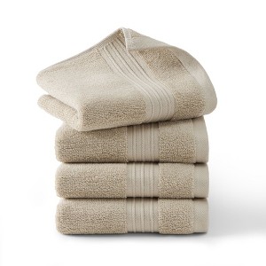 Product Name: TOWN & COUNTRY EVERYDAY 4-Piece Solid Dobby Border Washcloth Set, 13x13-Inch, 100% Cotton, Plush & Absorbent 650GSM, Beige