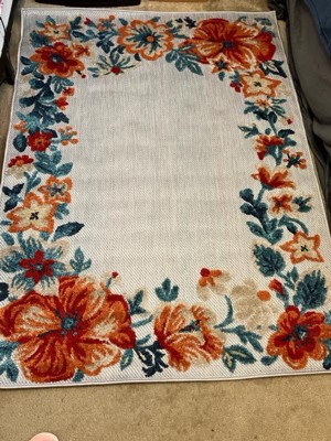 [This review was collected as part of a promotion.] This TOWN & COUNTRY EVERYDAY Hibiscus Bloom Border Modern Floral area rug is a very beautiful. The rug is an indoor & outdoor rug that looks like a hand made textile. The photo of this rug on the site and on the package does not do it justice. The flowers are soft rug fabric that are bright and beautiful and the light color is a smooth texture that is very easy to clean. I put the rug indoors next to my couch and it brights the whole space and make it very warm and cosy. I really like this rug a lot. I haven’t had it long enough to know how it will hold up to my dogs but so far it has not snagged and it is still looking nice, like new.