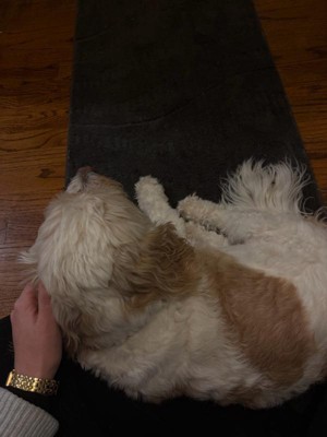 [This review was collected as part of a promotion.] i love this rug for a hallway runner! The color is perfect, and the pile isn’t too high so it’s easy to vacuum! My dog clearly loves it just as much as me!