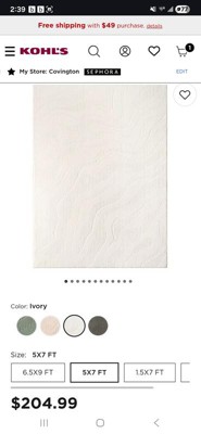 The Kohl's website advertises this item as 5x7, but unfortunately, the rug is an inch shorter on 2 sides and 2 inches shorter on the other 2 sides than what is advertised. In addition, this rug came with a blue stain in the corner.