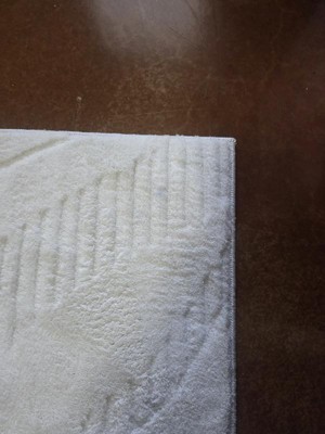 Was a little hesitant to buy this rug as the pattern looks more harsh in the pictures. It was packaged very well, and upon opening laid flat within minutes. The pattern is subtle and the rug is super soft. I ended up ordering more! (pictured: 5x7 in Taupe placed on top of a cream patterned rug for color comparison)