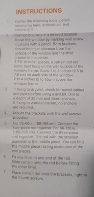 [This review was collected as part of a promotion.] I’m really pleased with the Modern Rounded Cap Single Curtain Rod & Finial Set from Town and Country Everyday. First off, installation was a breeze. The instructions were clear and easy to follow, and all the necessary pieces were included in the box. Just keep in mind that you’ll need to have your own tools on hand. The design is simple yet stylish, with a modern rounded cap that adds a nice touch to the room without being too bold. It blends well with various décor styles and looks high-quality once installed. The rod feels sturdy, and it should hold up well with curtains of different weights. Overall, this curtain rod set is a great choice if you're looking for something easy to put up, well-designed, and functional. Definitely recommend!