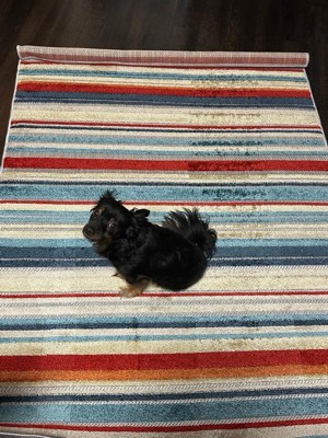 [This review was collected as part of a promotion.] What a cool rug! I love the colors and the stripes and it fits the aesthetic in my office perfectly. You can tell that it’s a high quality rug…and I might even move it to the back porch when it warms up!