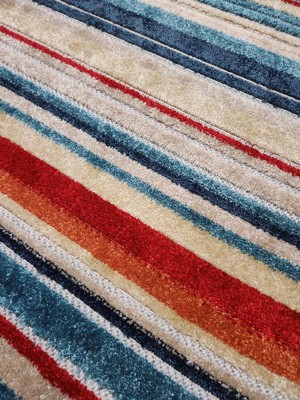 TOWN & COUNTRY EVERYDAY Rio Multicolor Stripe Indoor Outdoor Area Rug, UV Fade Resistant, High-Low Pile, Red/Multi, 7'10"x10'2"