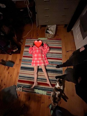 [This review was collected as part of a promotion.] Absolutely love this rug! As you can tell my dog does too! Plus we’ve been using it for our son bc he’s starting to learn to crawl and we have hardwood floors. But its colors great and the feel isn’t harsh! I wish I got a bigger one!