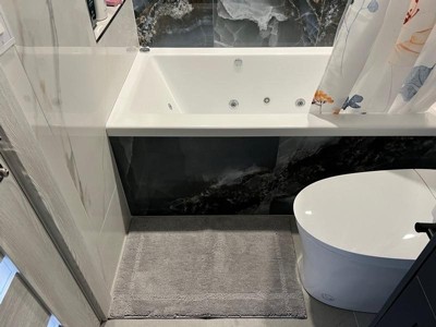 [This review was collected as part of a promotion.] Super cozy, has lots of cushion, dries quick, and looks great with just about any bathroom decor. It’s very comfortable to stand on while getting ready as well. I love that it seems very durable too.
