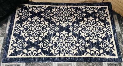 [This review was collected as part of a promotion.] The first thing that I noticed is that this rug is the perfect size for either a Kitchen or an entryway . It has a non-slip bottom. The design is vivid colors of white and blue. It’s a very pretty addition to an entryway or bathroom, or even in your kitchen. I put mine in my kitchen, and it is very comfortable to stand on while I do dishes. I spilled on it a little bit, and I was pleased to find that clean up was super easy because of the low pile fibers . It’s a machine washable decorative rug and is crafted from 100% super soft woven loop polyester, giving a luxurious feel while withstanding high-traffic areas with its durable construction and non-slip latex backing. I highly recommend this .
