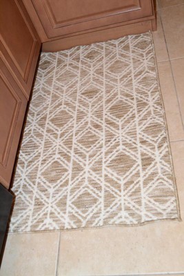 [This review was collected as part of a promotion.] I love this rug! It is a perfect neutral color, kind of a bamboo, light wood type color, and it matches everything. I have it in my kitchen in front of the sink. It's great to add a little cushion over the hard floor while doing dishes, and keep my feet warmer since there's a vent there. It's a really study rug, and has grippy texture on the bottom so I don't need a liner or mat underneath the rug. I haven't had to wash it yet, but it doesn't look like it will be too hard.