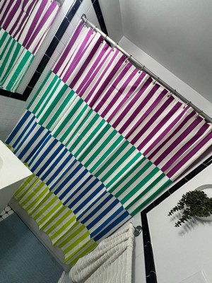 [This review was collected as part of a promotion.] This shower curtain is great for the kids bathroom! It has bright and vibrant colors, made from super durable fabric, and the metal grommets around the holes to hang it up make it so they can't rip the fabric if they accidentally pull on the curtain too hard. Easy to wash, just throw it in the washer! Well worth the price!