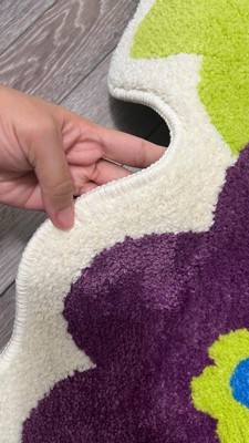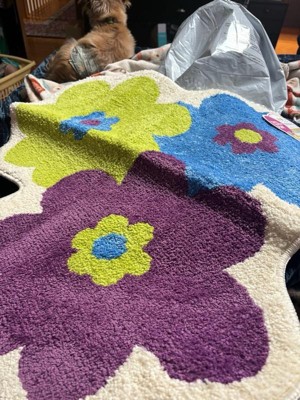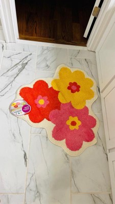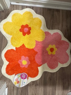 Everything is coming up daisies when you add this colorful Town & Country Play Blossom Retro Daisy flower-shaped bath mat into your bathroom! Step out of the shower or bath tub onto this super soft, tufted bath mat that will quickly absorb water and provide a safe non-slip step. This fun and vibrant daisy floral bath rug is a round-like shape measuring 31.5"x31.5" and can be used directly in your bathroom for a bold pop of color or in your bedroom as an accent rug. Machine washable for easy care .