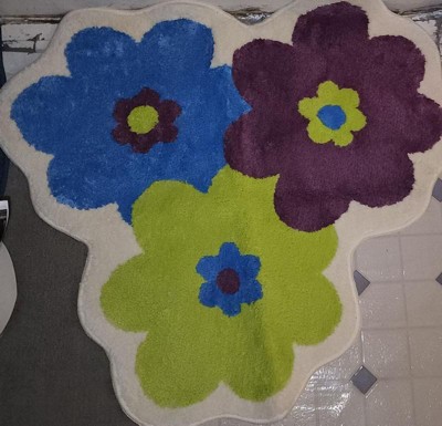 [This review was collected as part of a promotion.] Such bright and sunny colors! It’s a beautiful rug that has an interesting design. Not the usual rectangle which makes it a nice addition to a play room or a bathroom dressing area. The rug is soft and not too thick. It doesn’t slide around either.