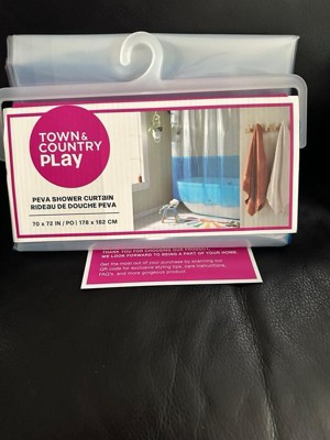 TOWN & COUNTRY PLAY Ciara Mod Colorblock Clear 100% PEVA Shower Curtain Liner with Anti-Rust Grommets, Waterproof, Clear/Blue, 70"x72"