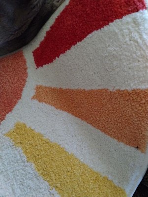 Hello, Sunshine! Update your clean routine with a cheerful dose of color with the Town & Country Play Hello Sunshine Rainbow Sun shaped bath mat! Step out of the shower or bath tub onto this super soft, tufted bath mat that will quickly absorb water and provide a safe non-slip step. This fun, retro-inspired rainbow sun bath rug is a semi round shape measuring 32.7"x16.5" and can be used directly in your bathroom for a joyful pop of color or in your bedroom as an accent rug. Machine washable for easy care .